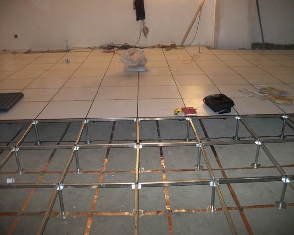 支架架空式防靜電地板銅箔銅帶施工鋪設現場